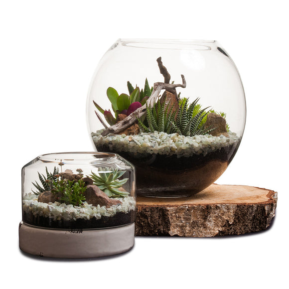 Liven up your living space with our handcrafted glass terrariums. Available in a variety of designs, our range of products add a touch of green to any room. Placed in contemporary glass vessels, our succulent and moss terrariums are the perfect indoor plants gifts. As a self-contained ecosystem, they are ideal for green thumbs and plant-novices alike, requiring minimal maintenance and care. Simply place them close to a window, water sparingly, and watch them flourish in your living space. Buy our Melbourne terrariums to create a stunning display in your own home, or give them to your loved ones as special plant gifts. Whatever your needs, browse our Rainforest, Desertscape, Revival & Seascape collections to find the best glass terrarium for you.